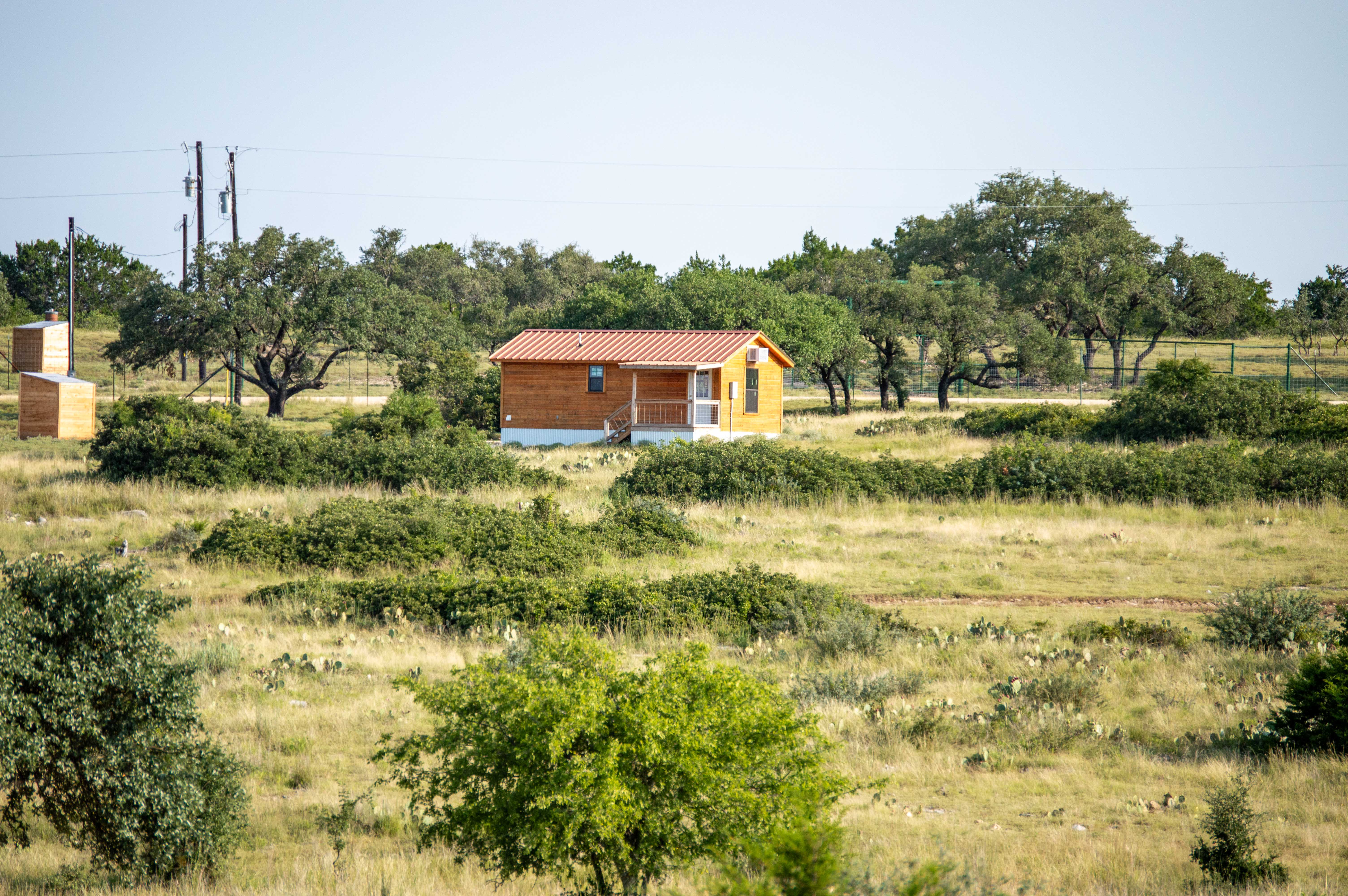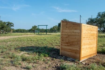 Land: The Trophy Exotic Ranch offers 71 +/- acres of rolling hill country, with gentle topography and views that are non-typical of this area. The ranch is covered with native grass and deeper than average soil. Live Oak mottes and Shin Oak dominate the vegetation of the ranch, with some cedar still growing, providing ample cover for game animals. The ranch is perimeter fenced with 6,500 linear ft of newly constructed high fencing. Through the center of the ranch runs a wet-weather run off area, creating a scenic draw that holds deep soil, with an elevation delta of over 80 ft on the ranch. A newly drilled 365’ Edwards Aquifer water well provides 20+ GPM capability, providing water to the improvements, trough, and newly completed pond, lined with Bentonite clay. A gentle ranch road system meanders throughout the ranch making all areas of the 71 acres accessible by 2wd vehicle. Neighbors are of similar size, ranging from 70 acres to 145 acres.